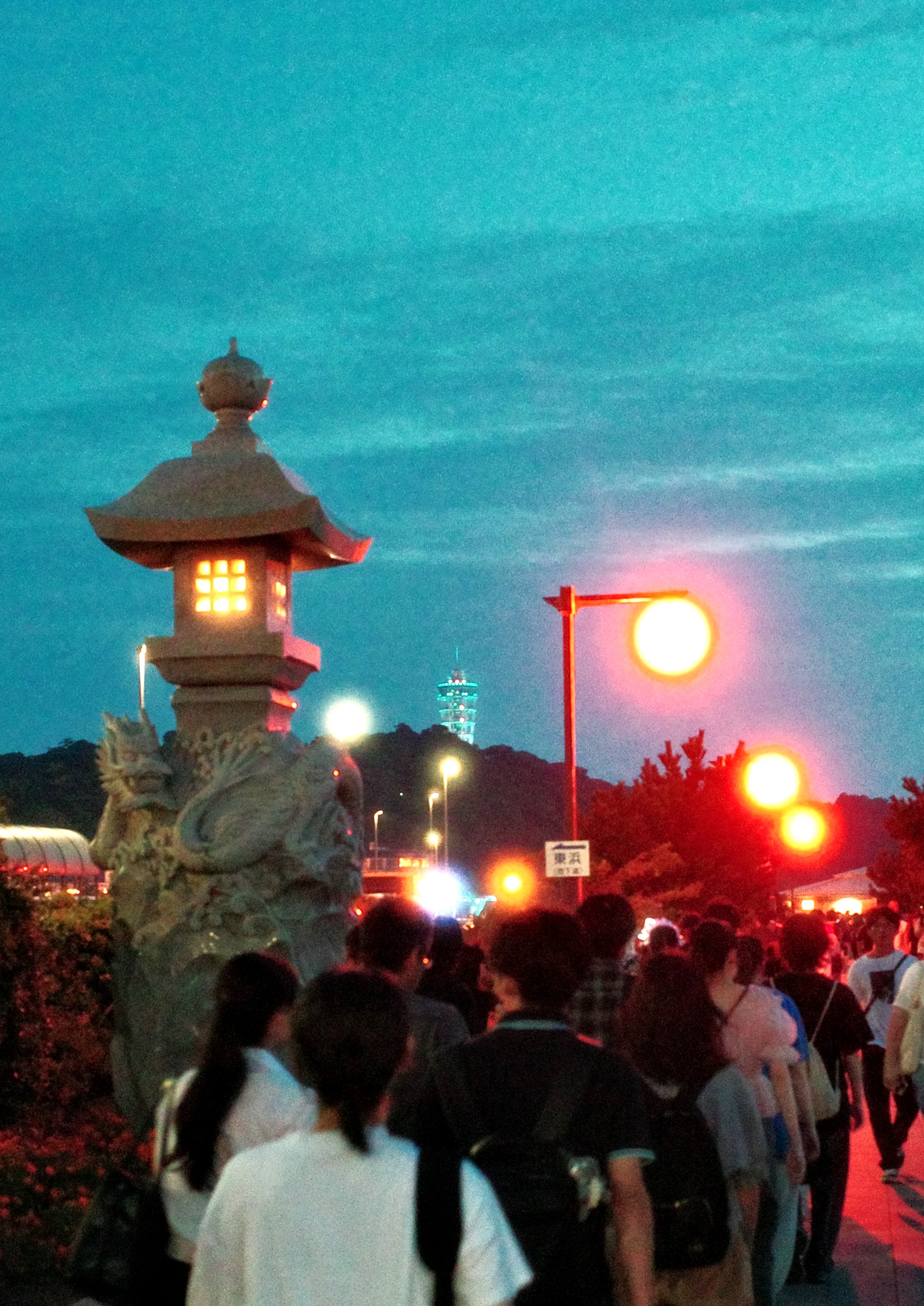 i went to enoshima on a night when the moon was huge—you can't tell from the photo—and when it was a red that'd be terrifying if it were halloween. but it was not halloween, it was mid-august, and the sea-bridge teemed with teenage schoolchildren who began crowding at the railing to photograph the moon. i see discourse sometimes about how it sucks that everyone has their phones out at concerts. and like yeah, i agree. but this wasn't like that at all. i dunno, i think when something spontaneous happens and everyone wants to document it, it's sweet. it reminds me of the barn in delillo's white noise; we're part of "a collective perception", an "accumulation of nameless energies". but anyways, i digress—it was a beautiful evening. the moon was beautiful, wasn't it?